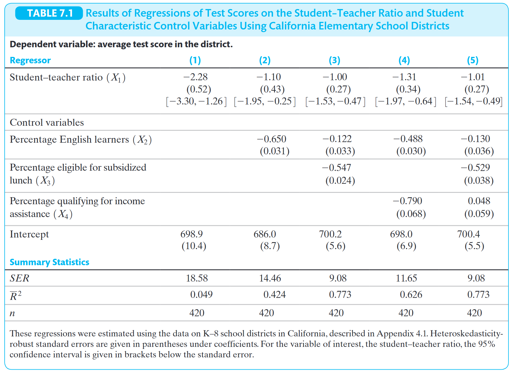 A ideia para aula prática de hoje será reproduzir a Tabela 7.1 do livro de Stock e Watson reproduzida abaixo.